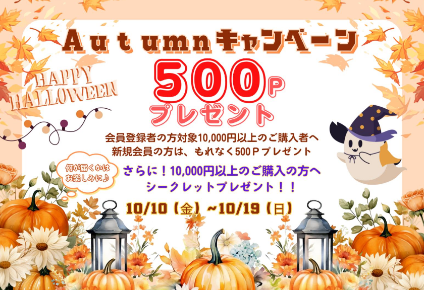 既存会員様:10,000円(税込)以上購入で500円相当のポイント&シークレットプレゼントを進呈!