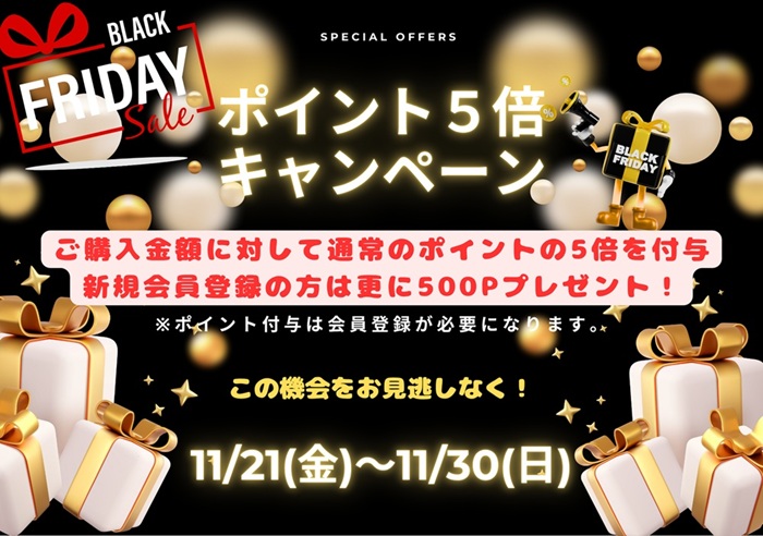 ファイブコンフォートオンラインショップブラックフライデーキャンペーンのお知らせです。